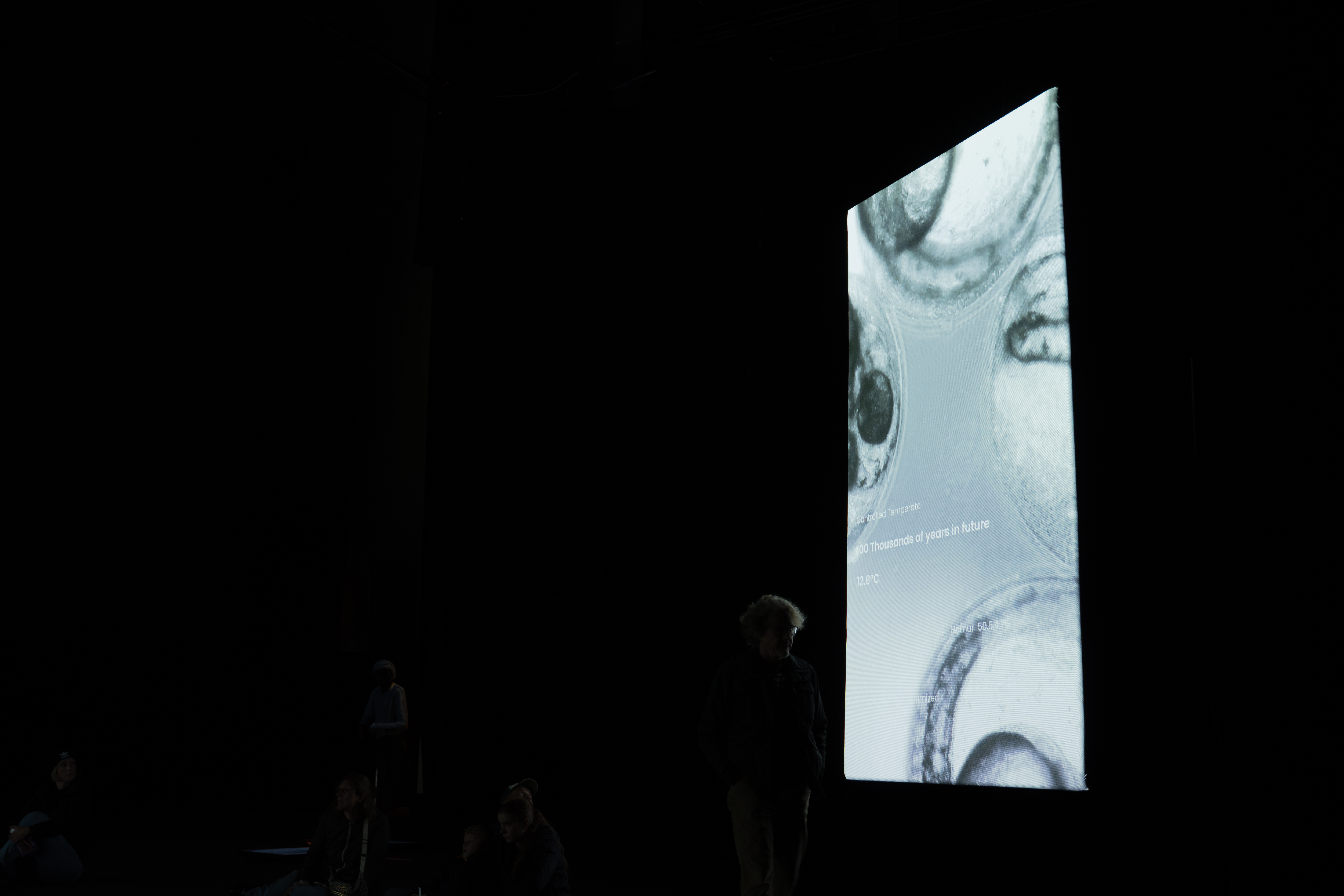 The immersive installation invites the audience to explore its story through an audiovisual experience, where the digital artwork merges with physical kinetic sculptures, transcending the poetic and scientific themes of ancient ecosystems, contemporary landscapes, and speculative futures. A multichannel soundscape weaves together audio recordings of rivers, forests, and the city, blending sonified river data with the ethereal voices of the Namur chamber choir.